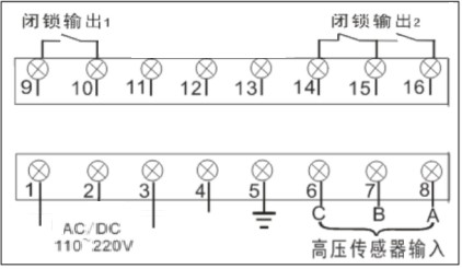 2、有工作電源時(shí):高壓任一相帶電,輸出接點(diǎn)9、10及15、16端子斷開(kāi),(閉鎖狀態(tài))14、15端子閉合